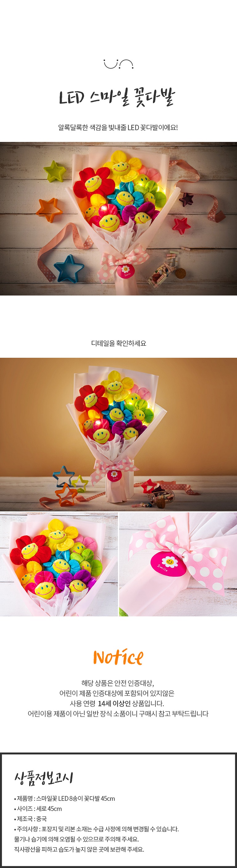 À§Å©¾Øµå ½º¸¶ÀÏ²É LED 8¼ÛÀÌ ²É´Ù¹ß 45cm ¼±¹° ¼¼Æ®