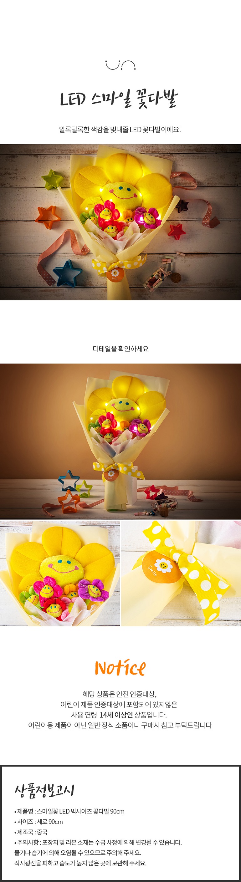 À§Å©¾Øµå ½º¸¶ÀÏ²É LED ºò»çÀÌÁî ²É´Ù¹ß 90cm ¼±¹° ¼¼Æ®