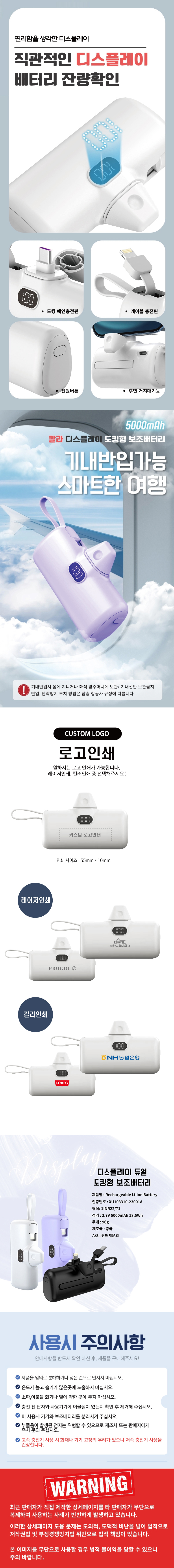 5000mAh ´º Ä®¶ó µð½ºÇ÷¹ÀÌ µµÅ·Çü º¸Á¶¹èÅ͸®